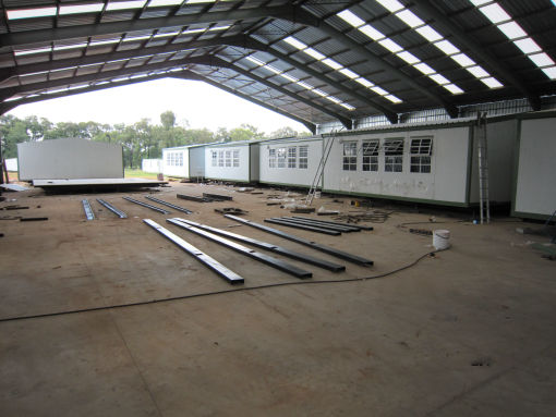 In 2008 a Polyurethane / polystyrene plant and cut to length line was introduced for the making of composites polyurethane and polystyrene panels for walling and roofing in our mobile and modular buildings. With the introduction of this plant , consisting of three 6m tables and eleven 3m tables, we were geared to handle large contracts more rapidly. With this capacity we have been fortunate to acquire large contract locally and into Africa. Our Mobile and Modular systems, as well as supplying many players in the industry with polyurethane panels or complete buildings in kit for their projects.